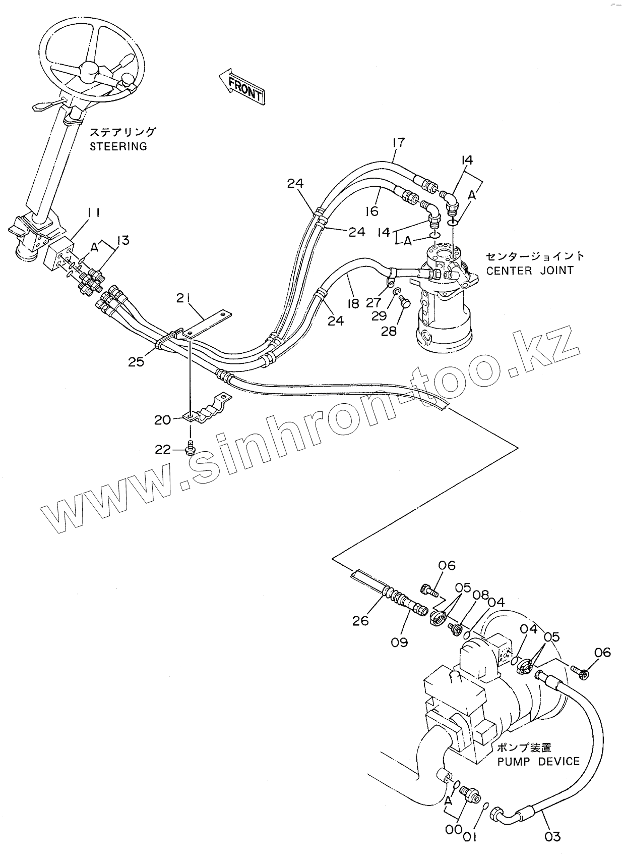 Каталог запасных частей к технике: Hitachi EX-160WD. STEERING PIPINGS (SUPERSTRUCTURE)