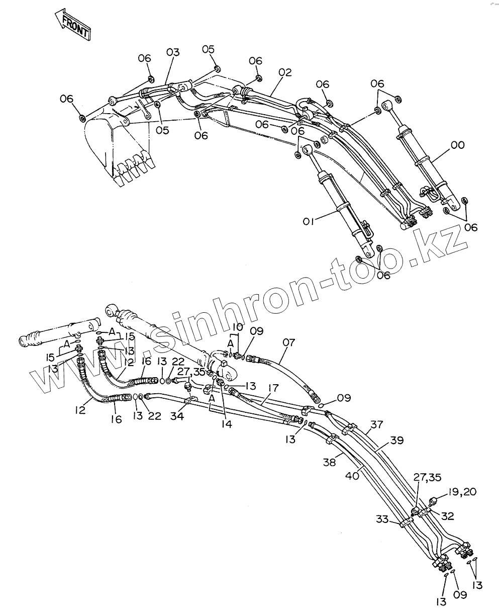 Каталог запасных частей к технике: Hitachi EX-200. FRONT PIPINGS