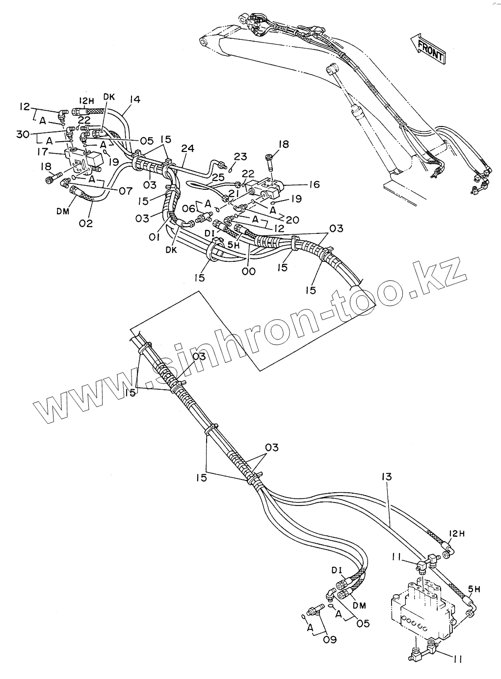 Каталог запасных частей к технике: Hitachi EX-200. HOSE RUPTURE VALVE PIPINGS (ARM)