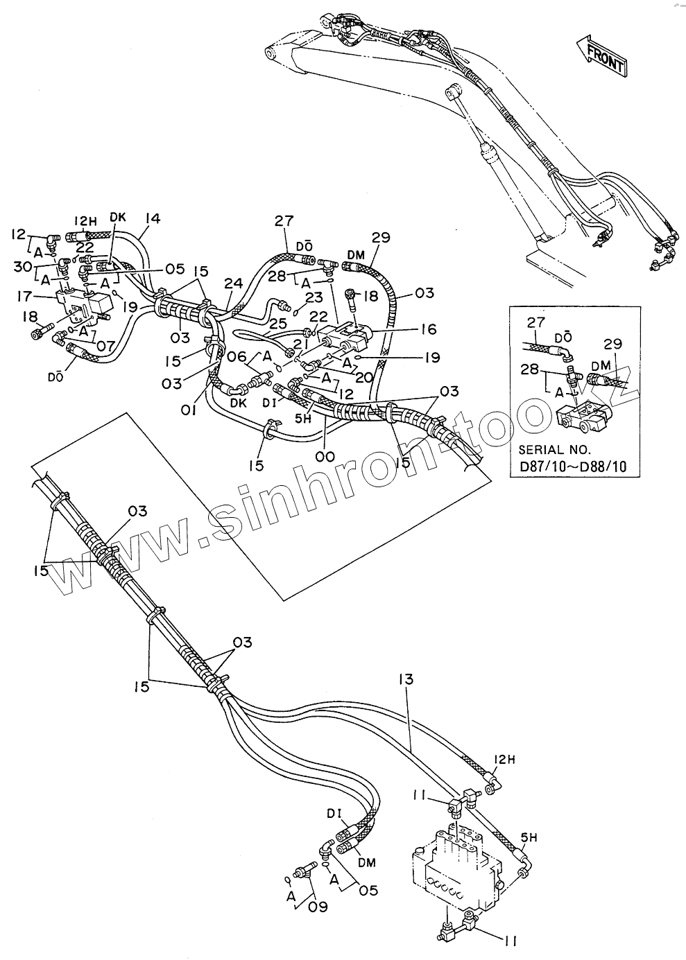 Каталог запасных частей к технике: Hitachi EX-200. HOSE RUPTURE VALVE PIPINGS (ARM)