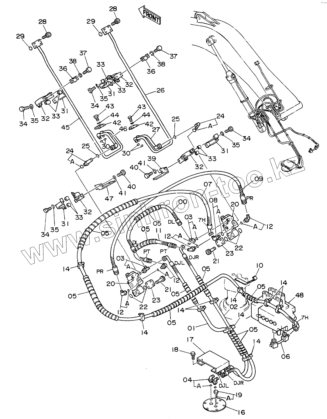 Каталог запасных частей к технике: Hitachi EX-200. HOSE RUPTURE VALVE PIPINGS (BOOM)