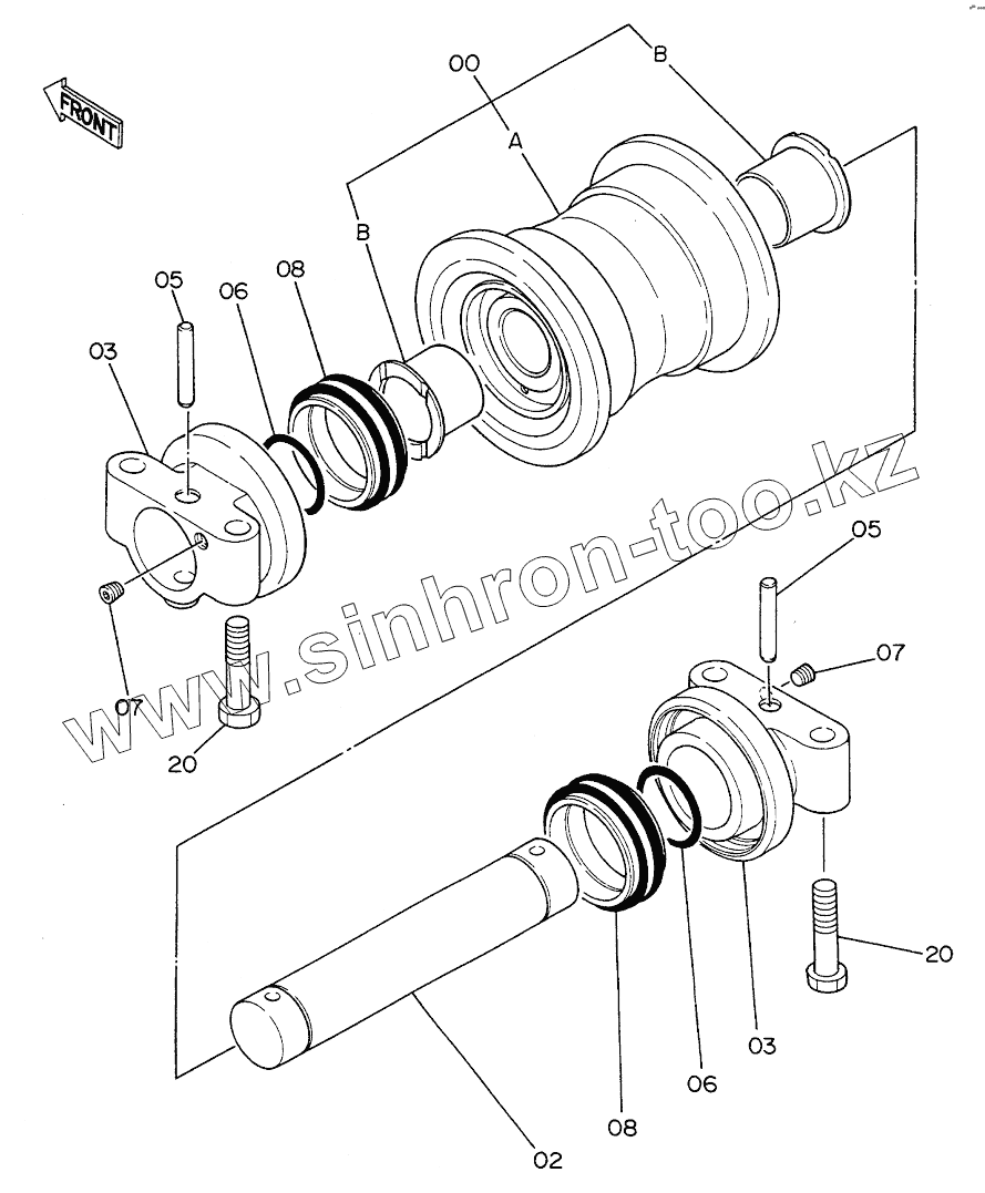 Каталог запасных частей к технике: Hitachi EX-200. LOWER ROLLER (STD. TRACK)