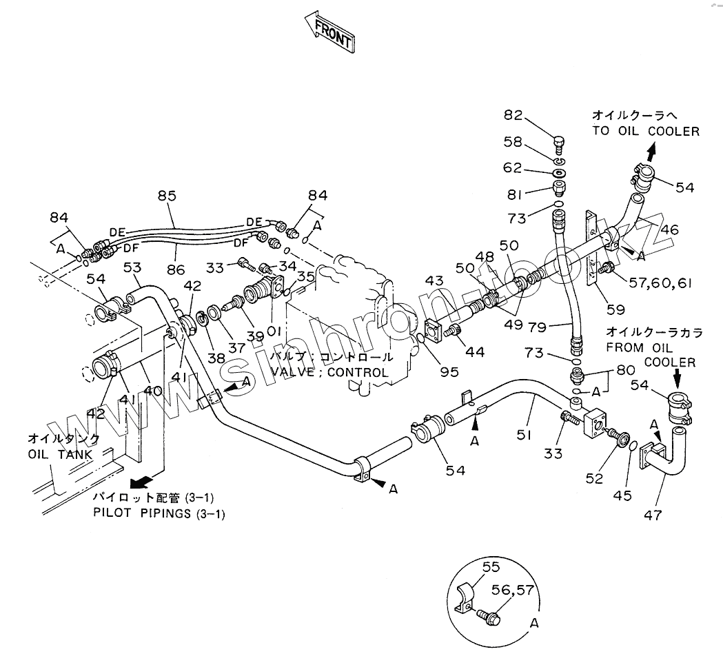 Каталог запасных частей к технике: Hitachi EX-200. OIL COOLER PIPINGS (2)