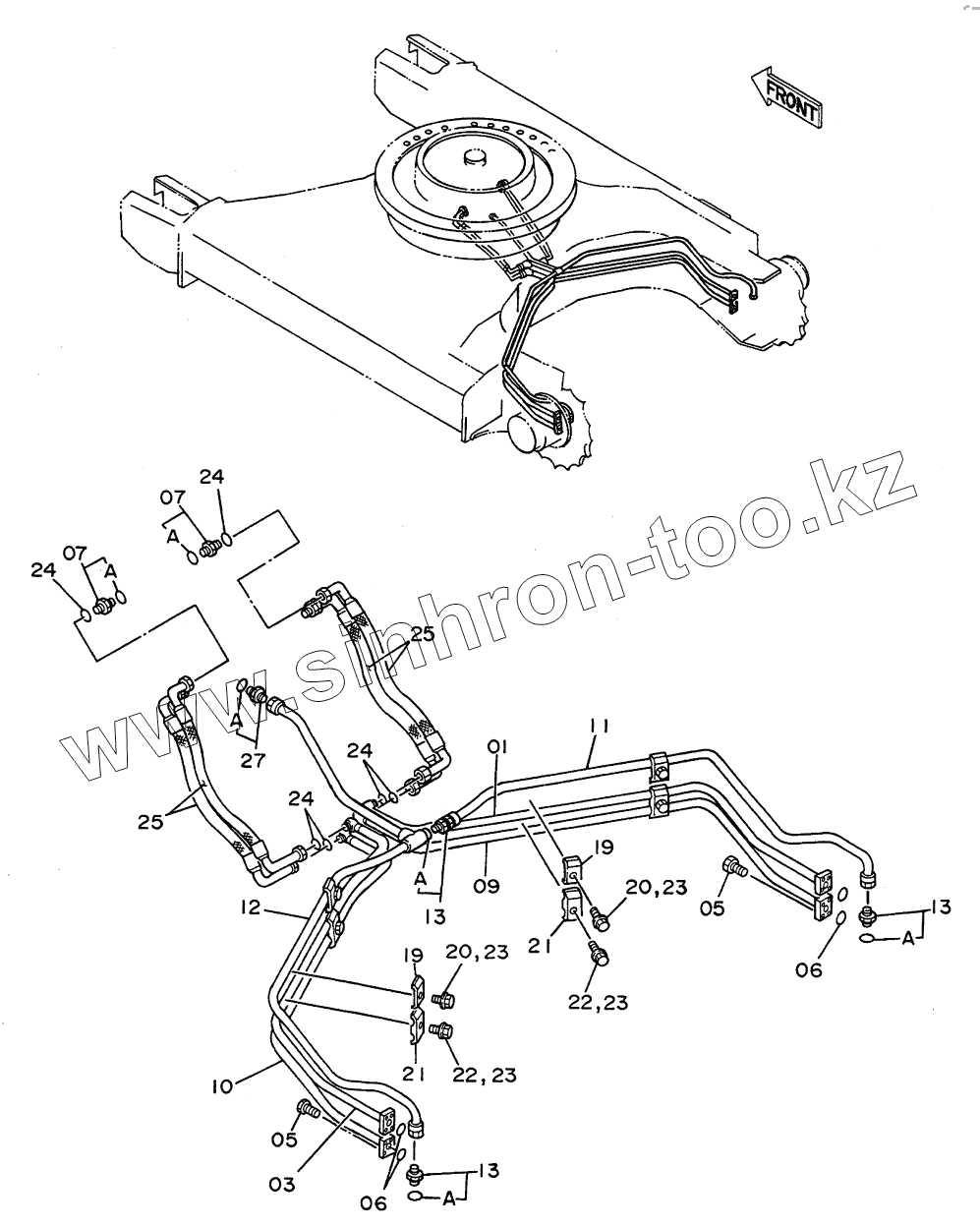Каталог запасных частей к технике: Hitachi EX-200. TRAVEL PIPINGS (STD. TRACK)