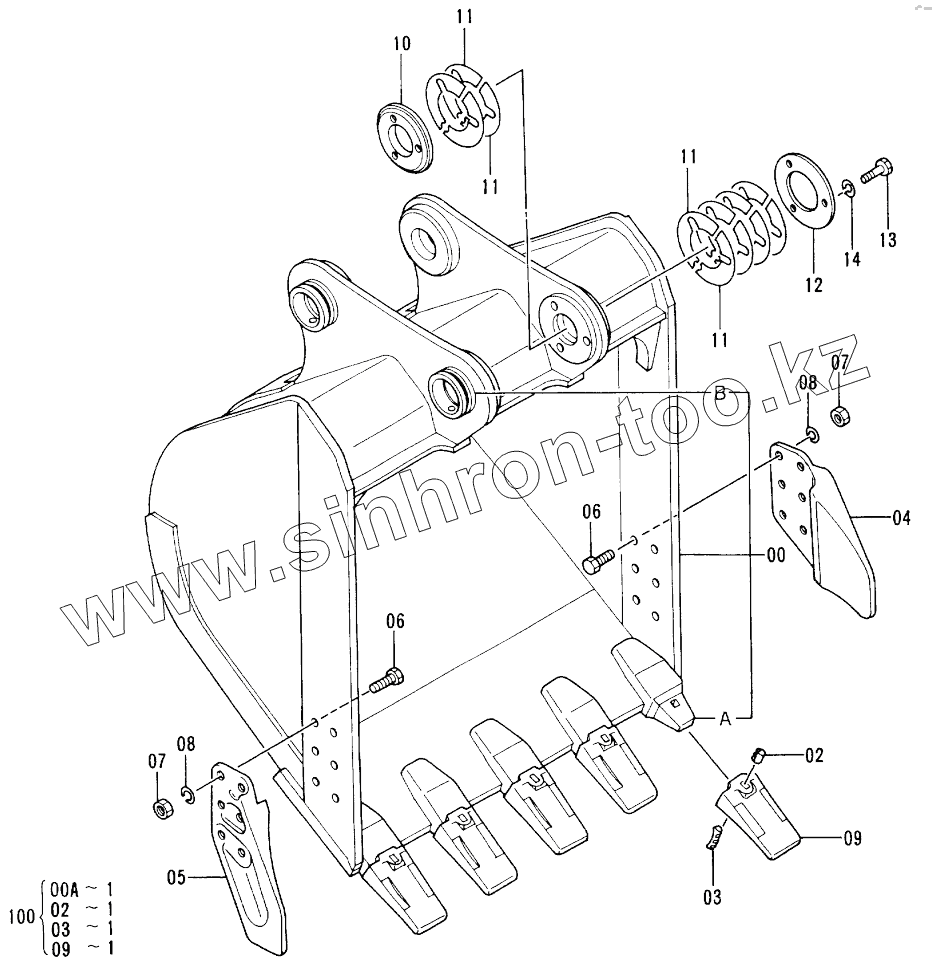 Каталог запасных частей к технике: Hitachi EX-200-2. BUCKET 0,8 60001-