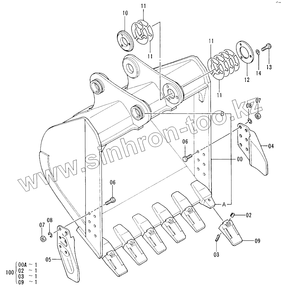 Каталог запасных частей к технике: Hitachi EX-200-2. BUCKET 0.9 60001-