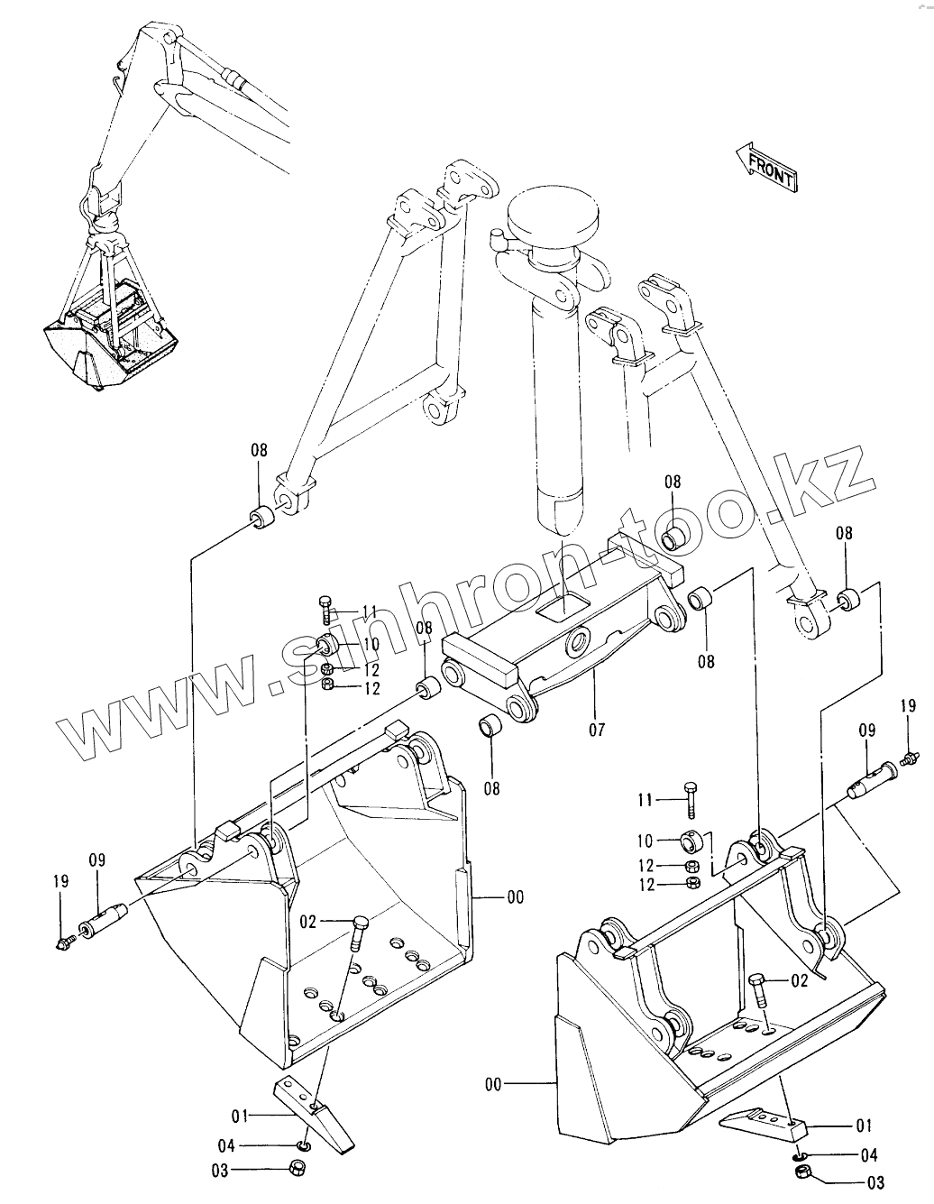 Каталог запасных частей к технике: Hitachi EX-200-2. CLAMSHELL BUCKET (1) 60001-