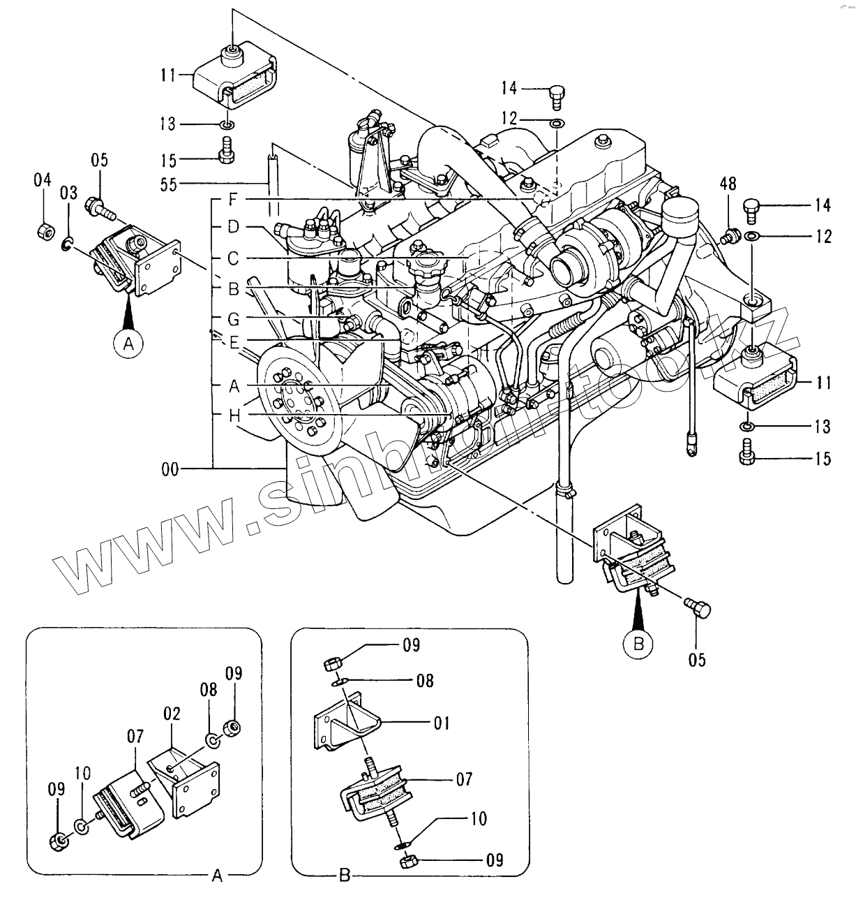 Каталог запасных частей к технике: Hitachi EX-200-2. ENGINE 60001-