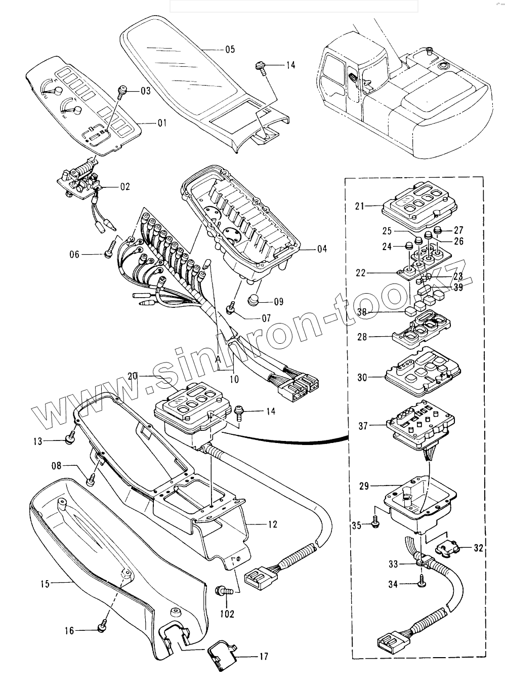 Каталог запасных частей к технике: Hitachi EX-200-2. GAUGE PANEL <STD><USA> 60001-