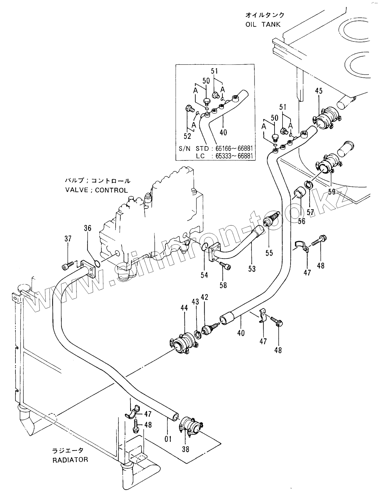 Каталог запасных частей к технике: Hitachi EX-200-2. OIL COOLER PIPINGS (3) 60001-