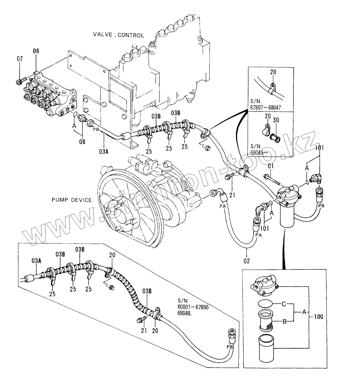 HOSE RUPTURE VALVE PIPINGS (BOOM):3 <Type 2> 60001-