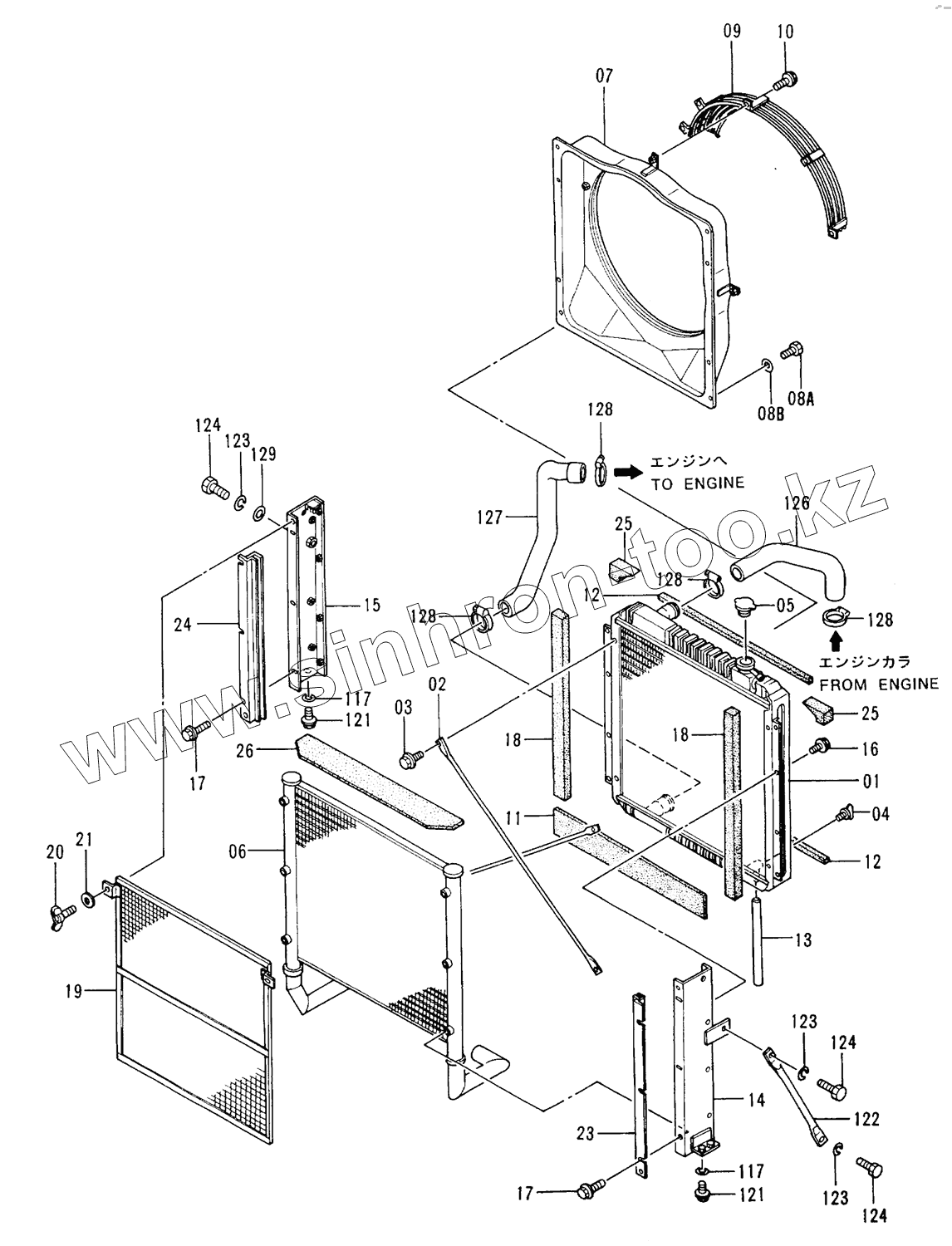 Каталог запасных частей к технике: Hitachi EX-200-2. RADIATOR 60001-
