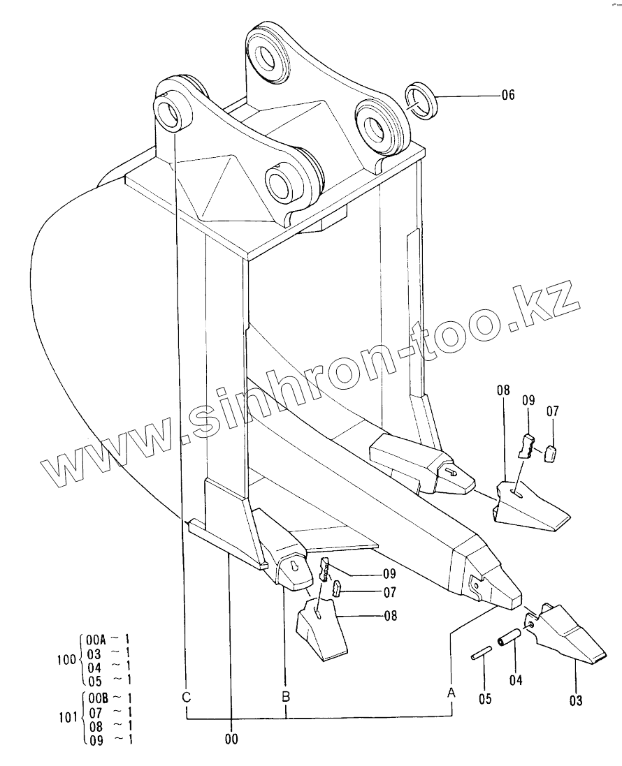 Каталог запасных частей к технике: Hitachi EX-200-2. RIPPER BUCKET 0.5 60001-
