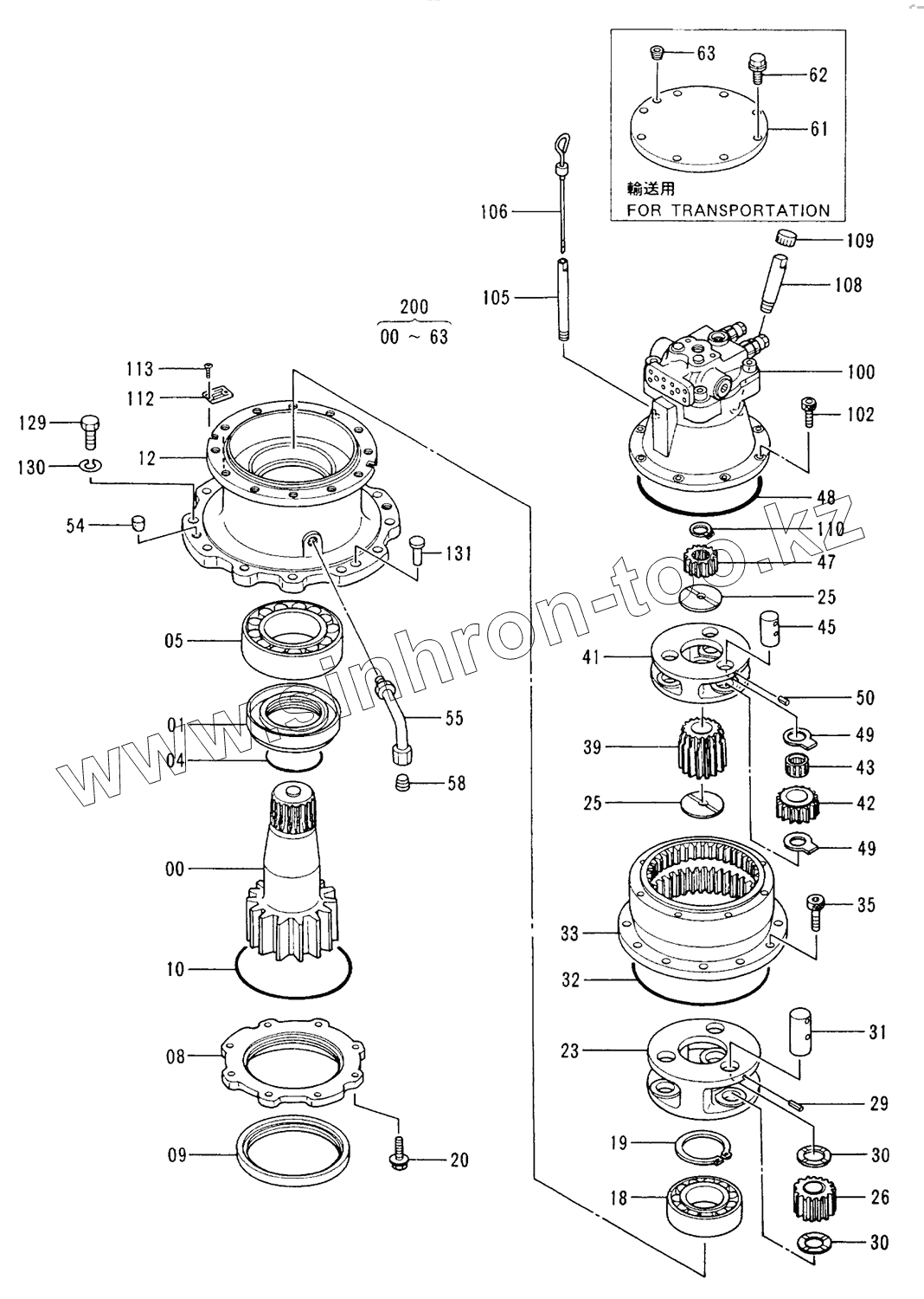 Каталог запасных частей к технике: Hitachi EX-200-2. SWING DEVICE 60001-