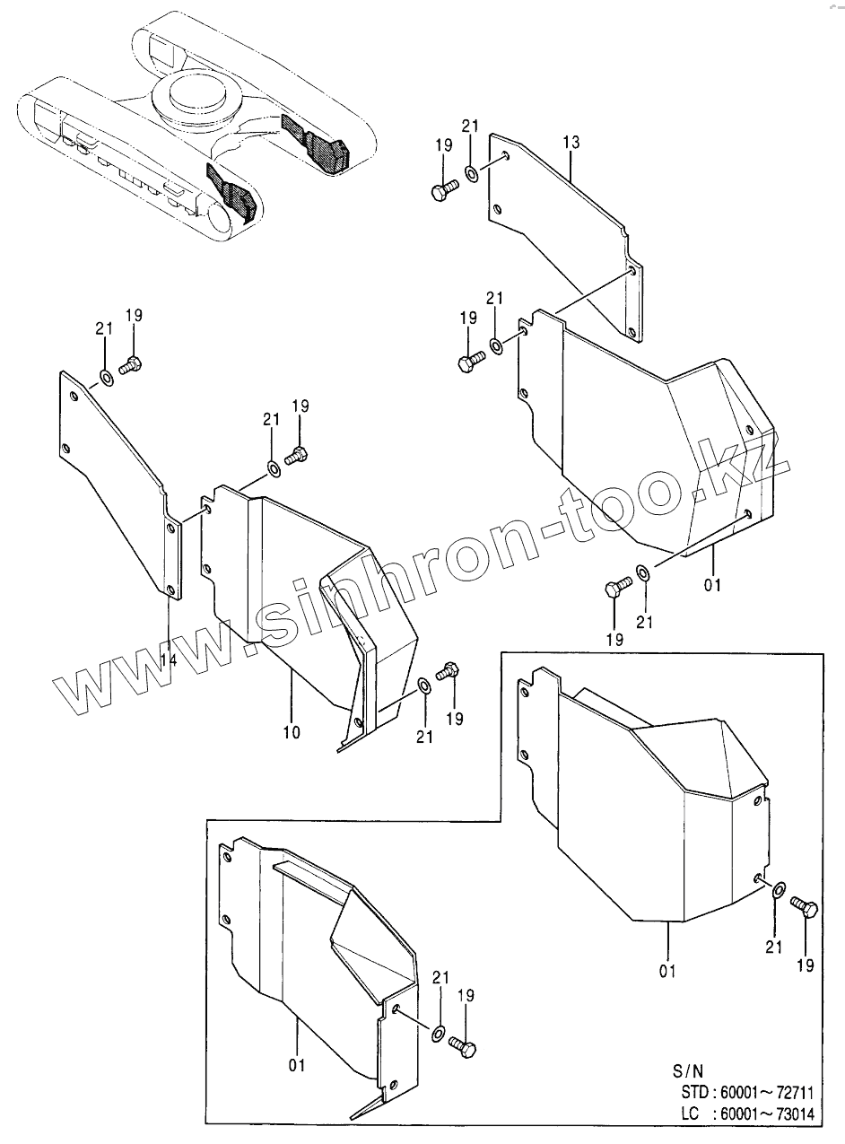 Каталог запасных частей к технике: Hitachi EX-200-2. TRAVEL PIPINGS COVER 60001-