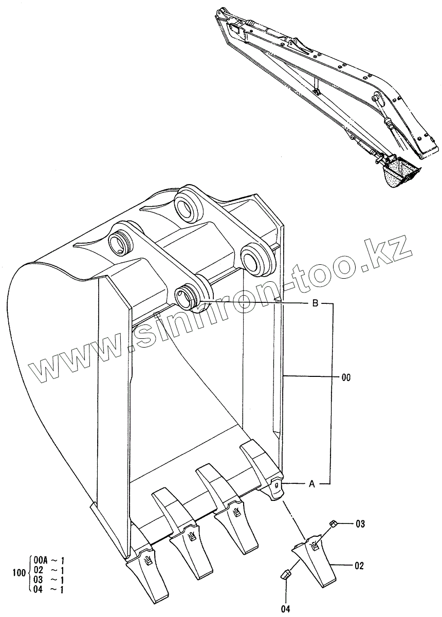 Каталог запасных частей к технике: Hitachi EX-200-3. BUCKET 0.4 <JIS 94>