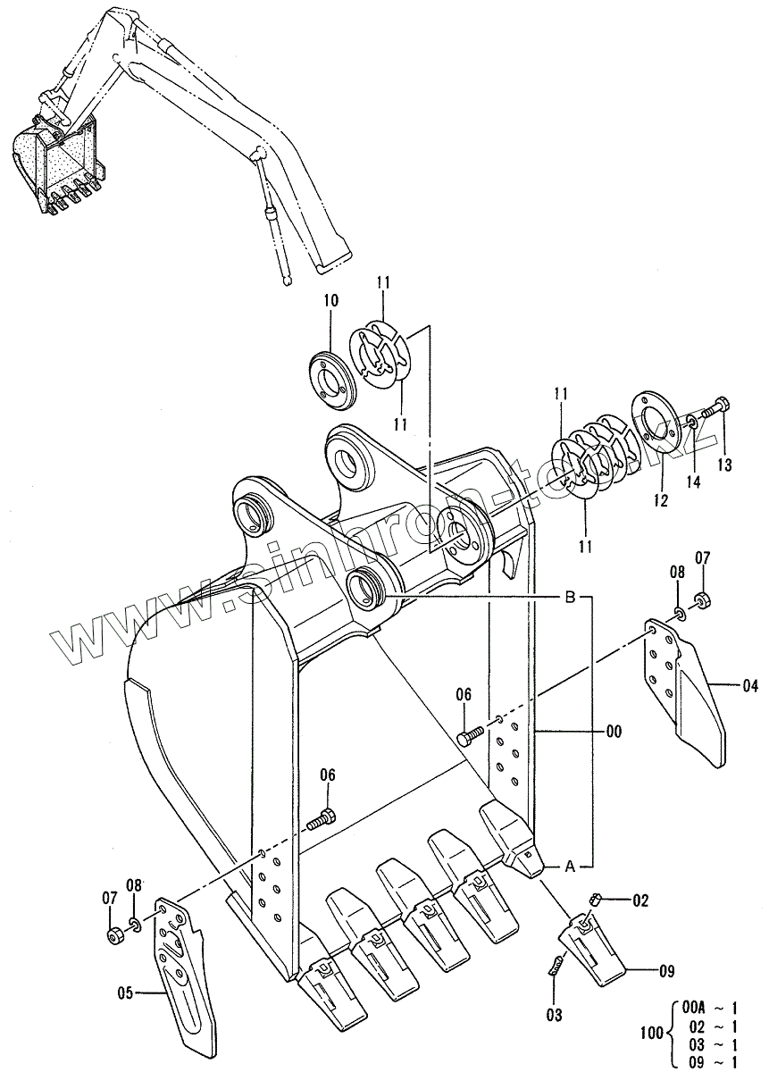 Каталог запасных частей к технике: Hitachi EX-200-3. BUCKET 0.8 <JIS 94>