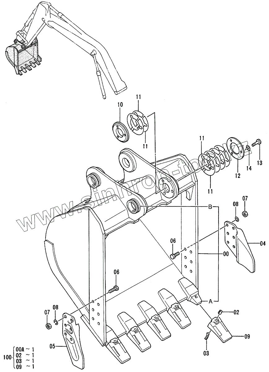 Каталог запасных частей к технике: Hitachi EX-200-3. BUCKET 0.91 <JIS 94>