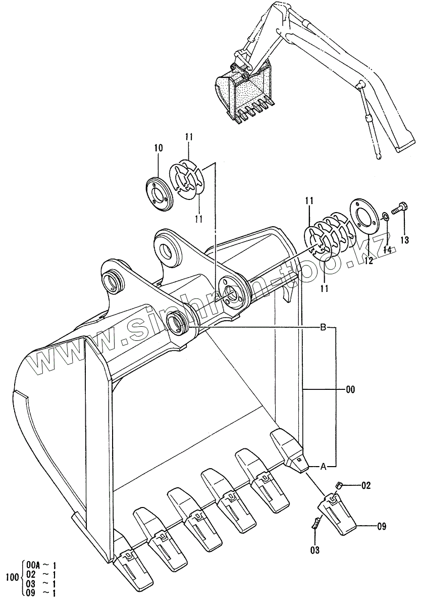Каталог запасных частей к технике: Hitachi EX-200-3. BUCKET 1.2 <JIS 94>