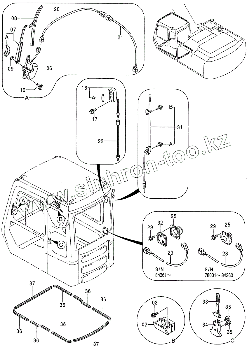 Каталог запасных частей к технике: Hitachi EX-200-3. CAB GROUP (2)