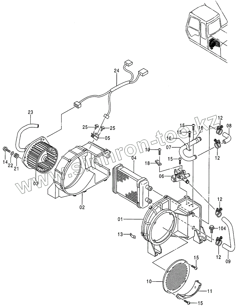 Каталог запасных частей к технике: Hitachi EX-200-3. CAR HEATER, 85747~