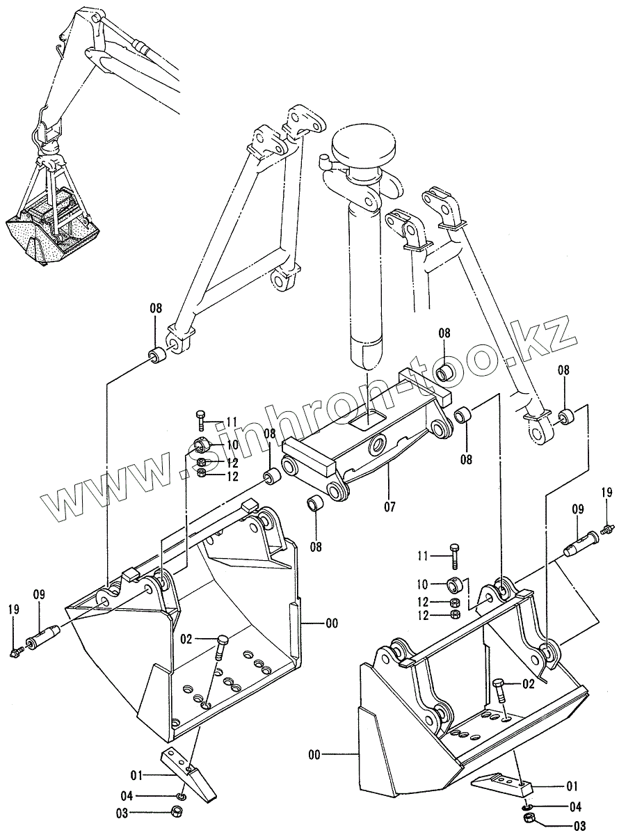 Каталог запасных частей к технике: Hitachi EX-200-3. CLAMSHELL BUCKET (1)