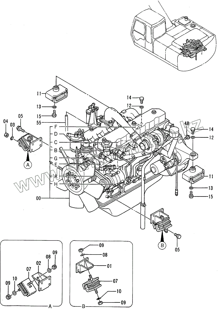 Каталог запасных частей к технике: Hitachi EX-200-3. ENGINE