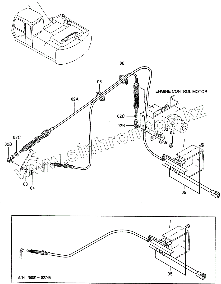 Каталог запасных частей к технике: Hitachi EX-200-3. ENGINE CONTROL CABLE