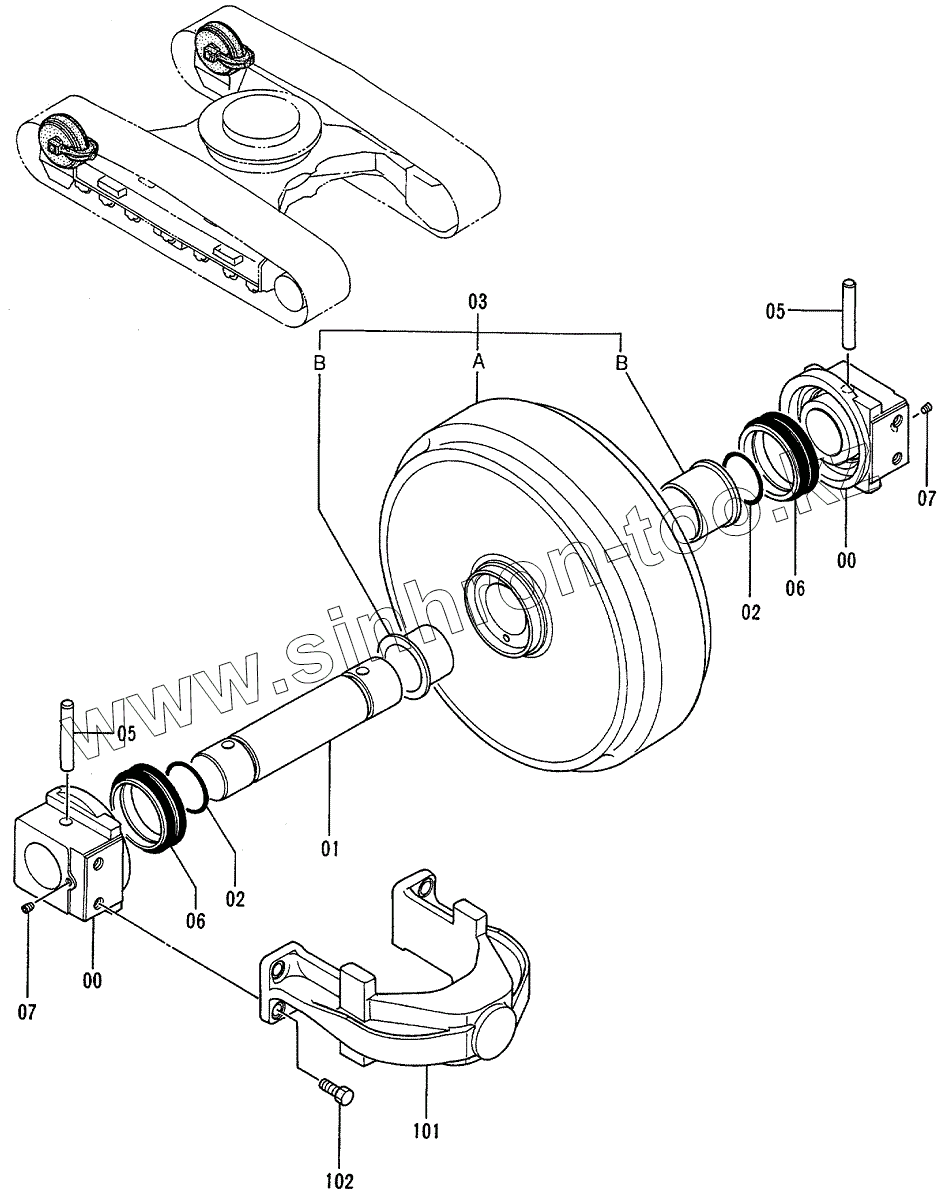 Каталог запасных частей к технике: Hitachi EX-200-3. FRONT IDLER