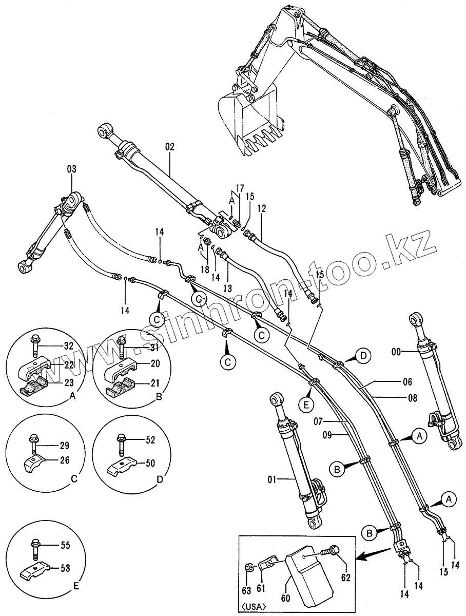 Каталог запасных частей к технике: Hitachi EX-200-3. FRONT PIPINGS (1)