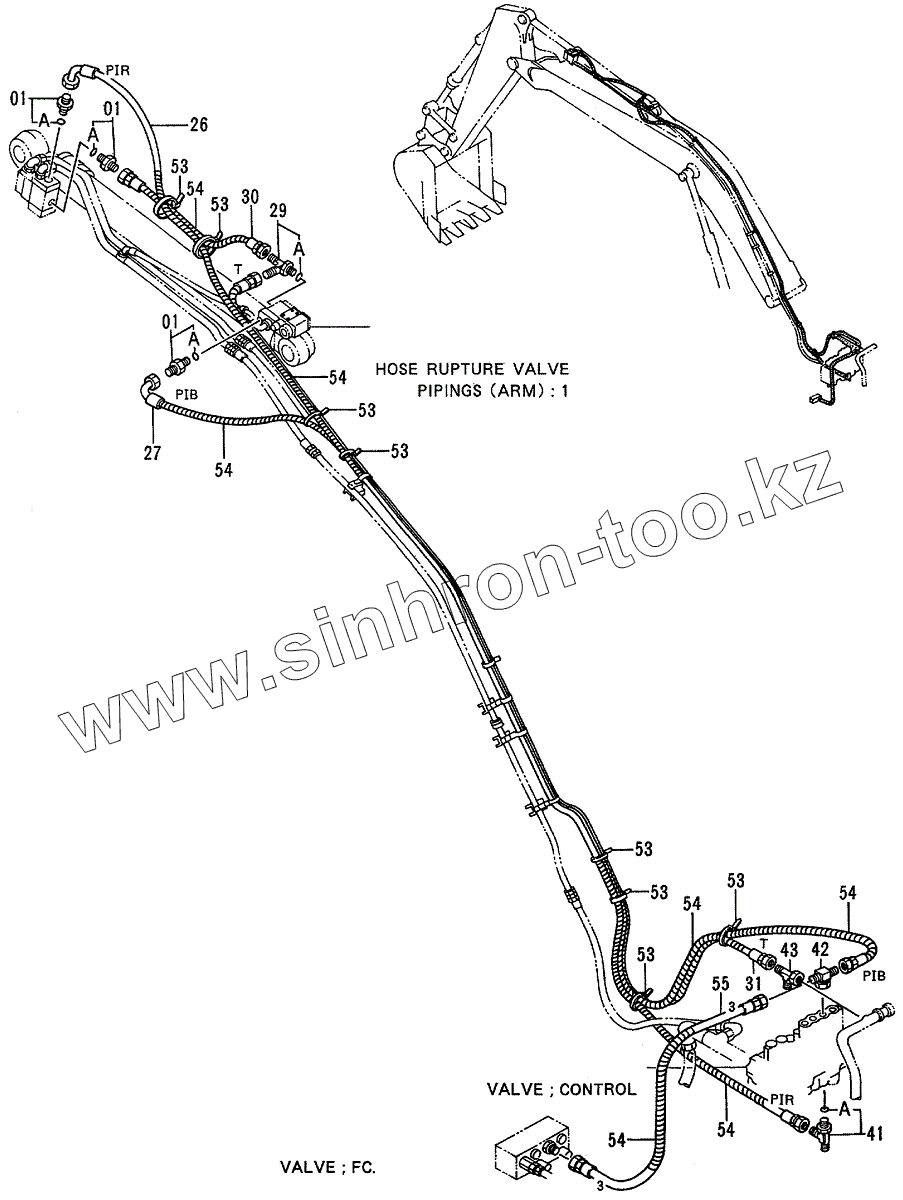 Каталог запасных частей к технике: Hitachi EX-200-3. HOSE RUPTURE VALVE PIPINGS (ARM):2