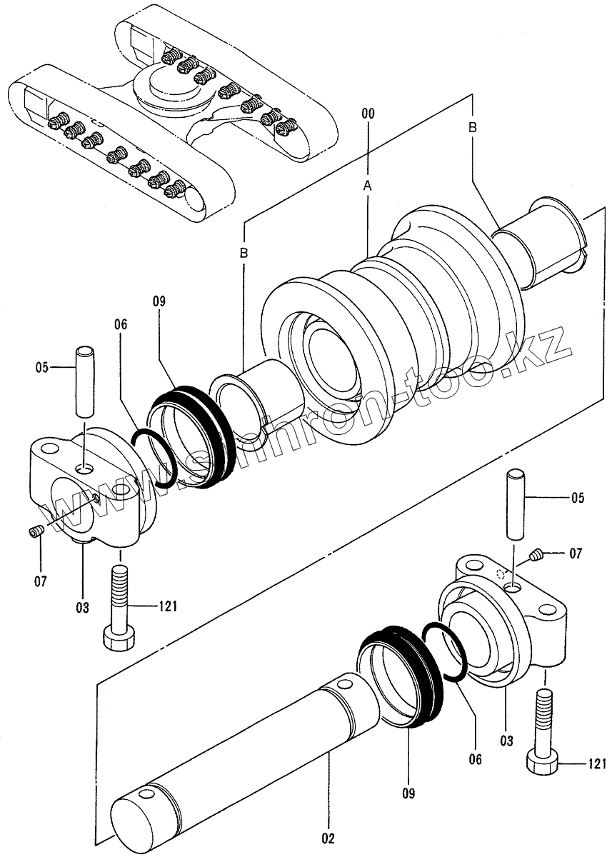 Каталог запасных частей к технике: Hitachi EX-200-3. LOWER ROLLER (STD. TRACK)