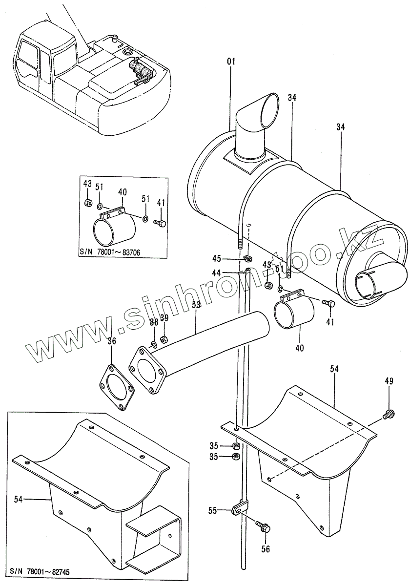 Каталог запасных частей к технике: Hitachi EX-200-3. MUFFLER