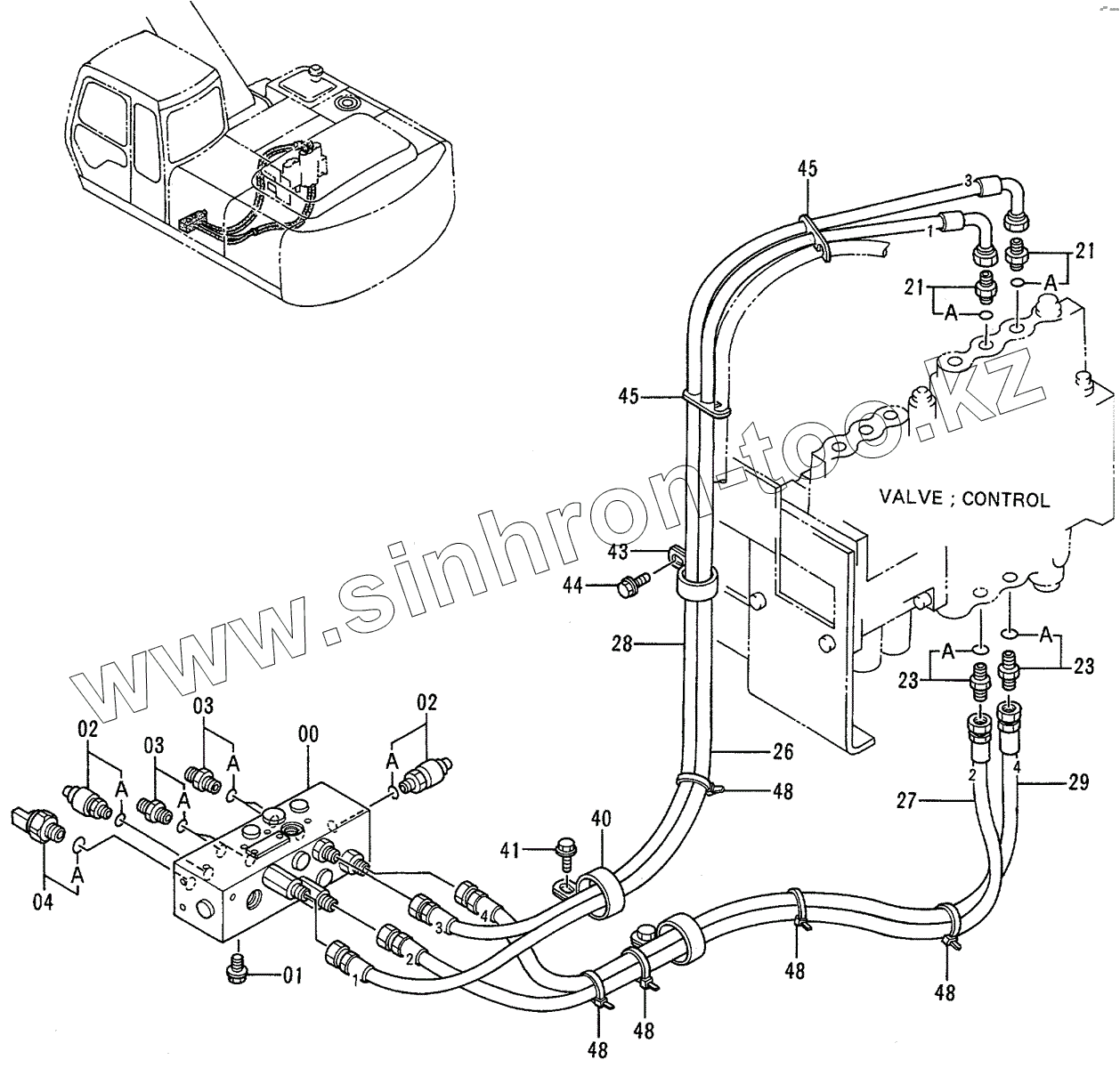 Каталог запасных частей к технике: Hitachi EX-200-3. PILOT PIPINGS (3-1)