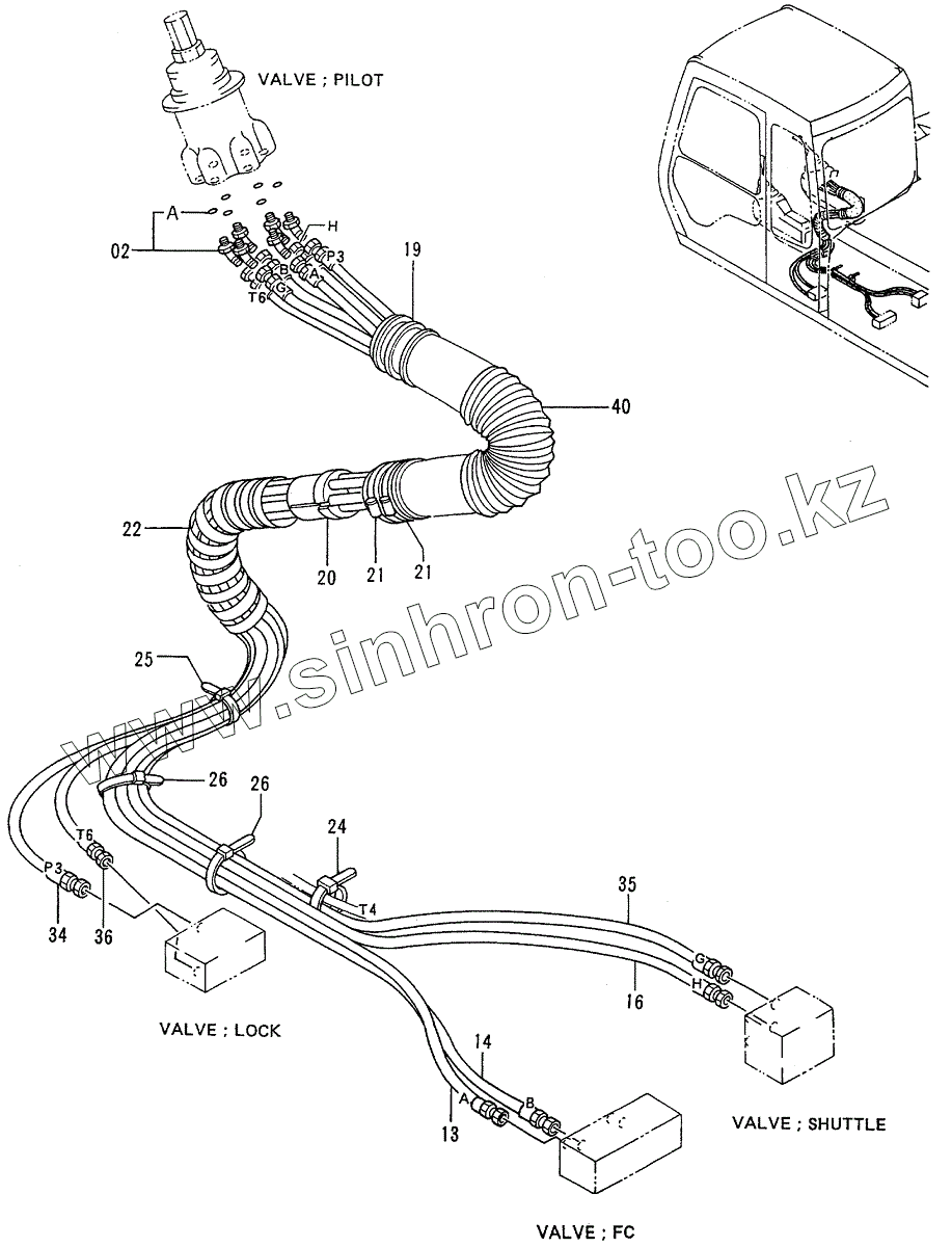 Каталог запасных частей к технике: Hitachi EX-200-3. PILOT PIPINGS (5-2) <USA>