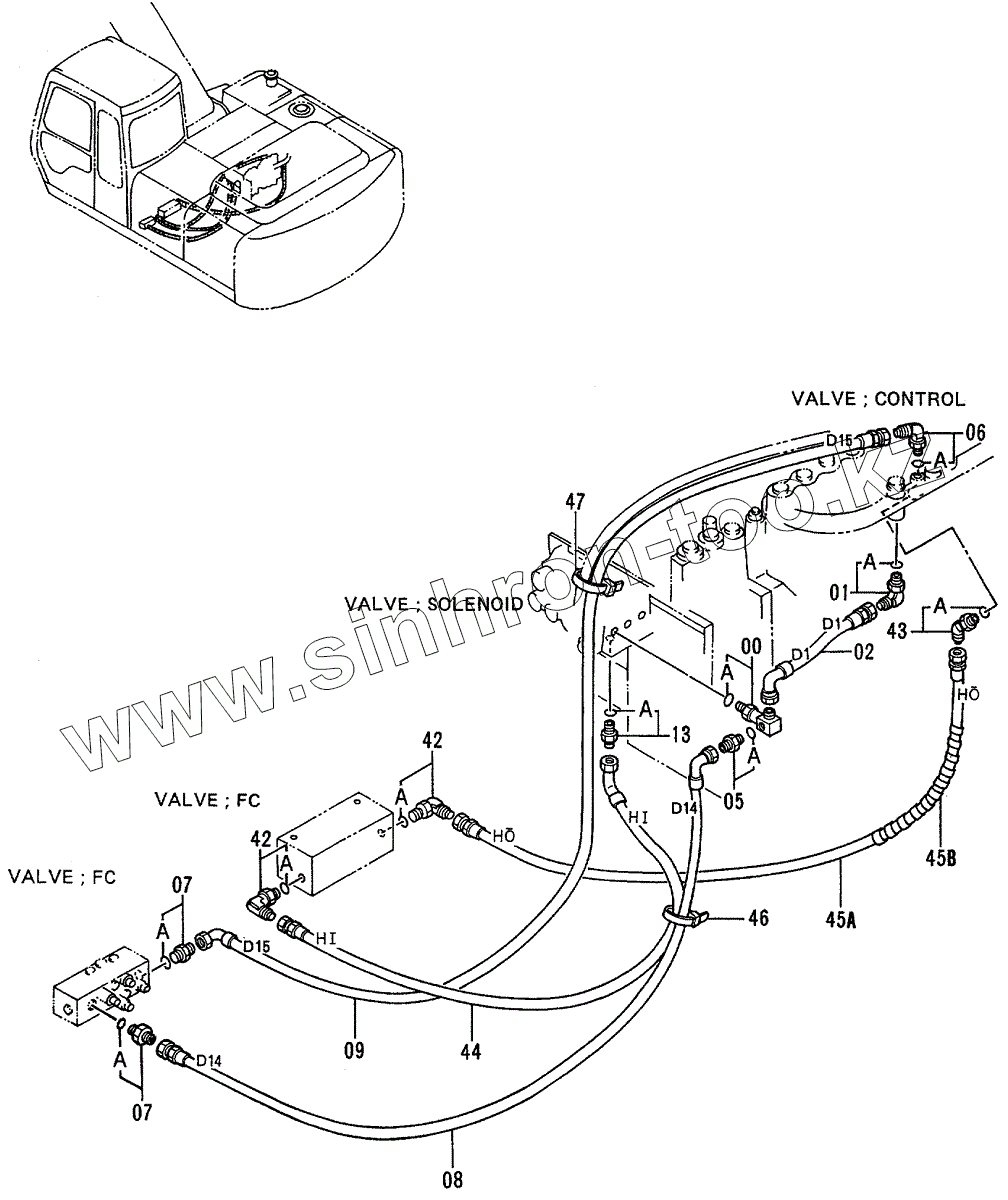 Каталог запасных частей к технике: Hitachi EX-200-3. PILOT PIPINGS (6-1)