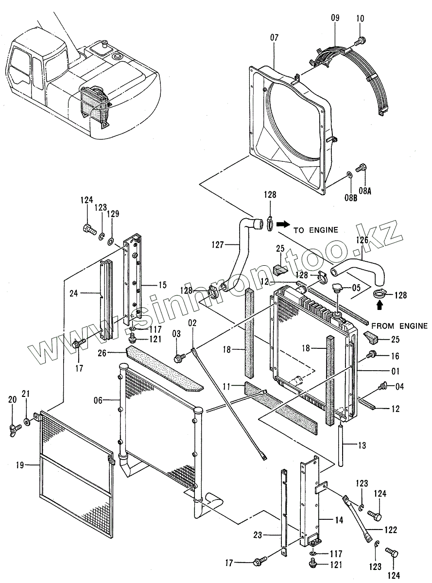 Каталог запасных частей к технике: Hitachi EX-200-3. RADIATOR