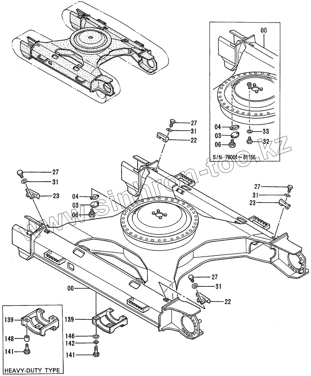 Каталог запасных частей к технике: Hitachi EX-200-3. TRACK FRAME <200 LC>, 78001~85386
