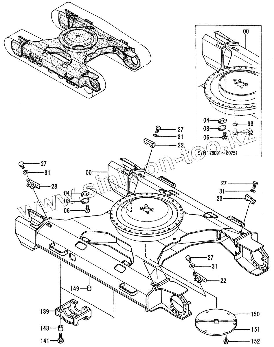 Каталог запасных частей к технике: Hitachi EX-200-3. TRACK FRAME <200H>, 78001~84671