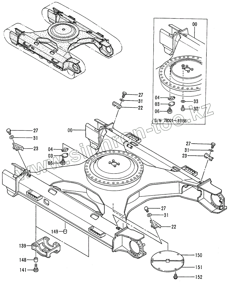 Каталог запасных частей к технике: Hitachi EX-200-3. TRACK FRAME <200LCH>, 78001~84671