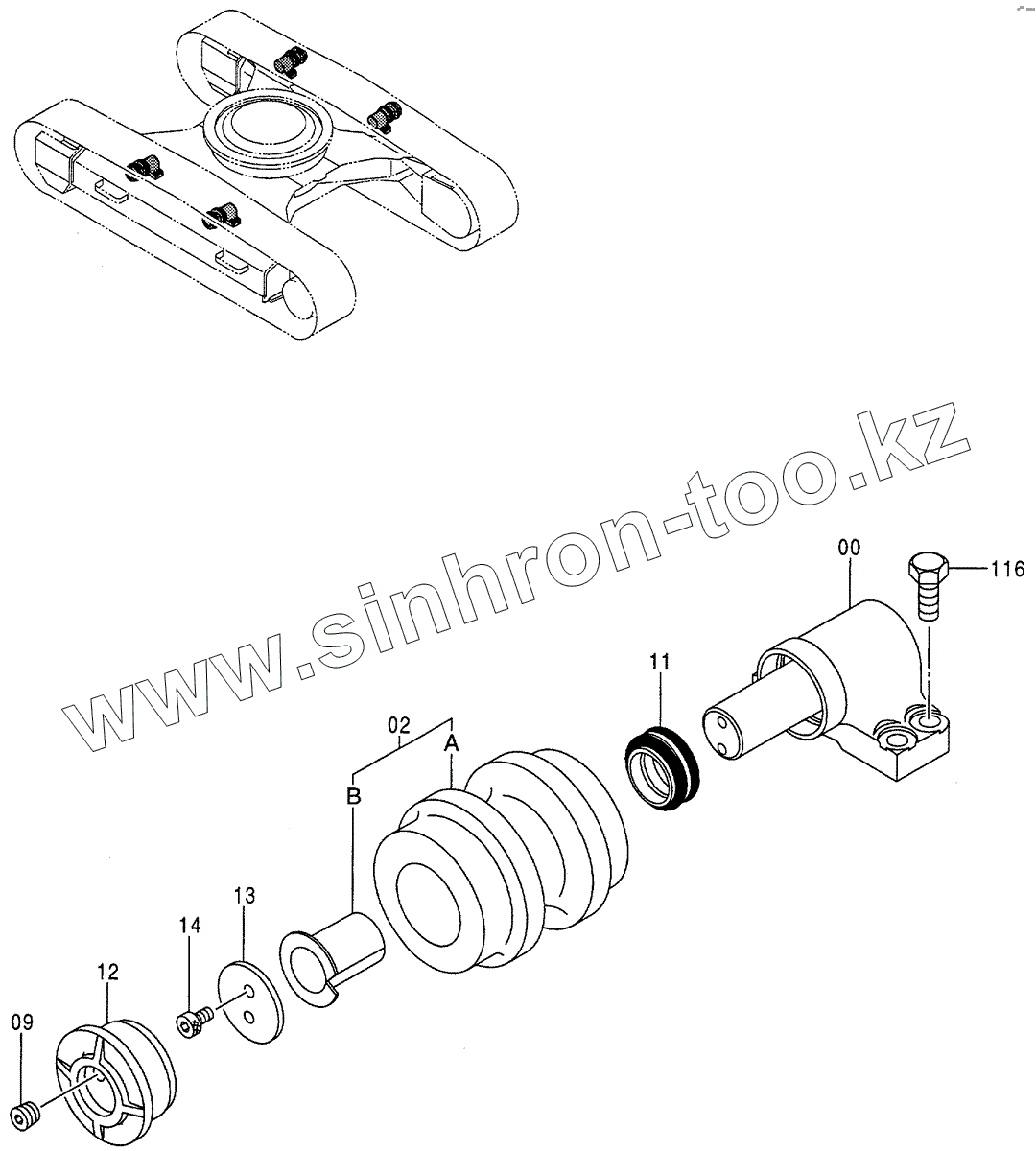 Каталог запасных частей к технике: Hitachi EX-200-3. UPPER ROLLER, 83808~