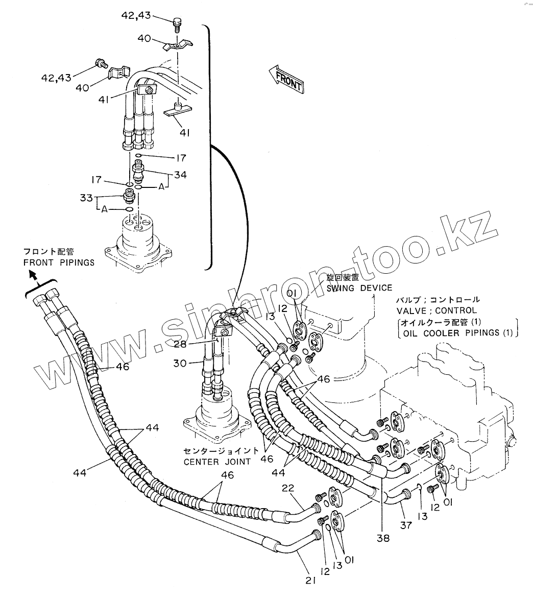 Каталог запасных частей к технике: Hitachi EX-220. MAIN PIPINGS (1)