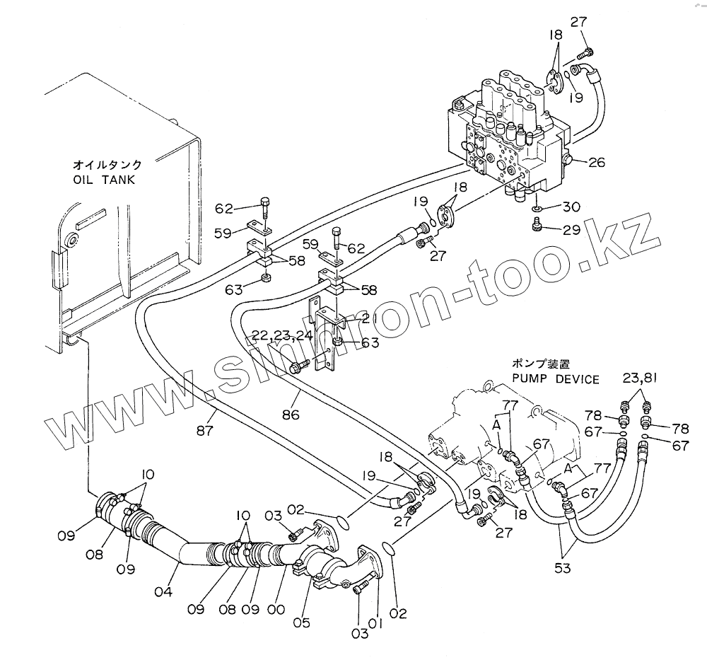 Каталог запасных частей к технике: Hitachi EX-220. OIL COOLER PIPINGS (1)