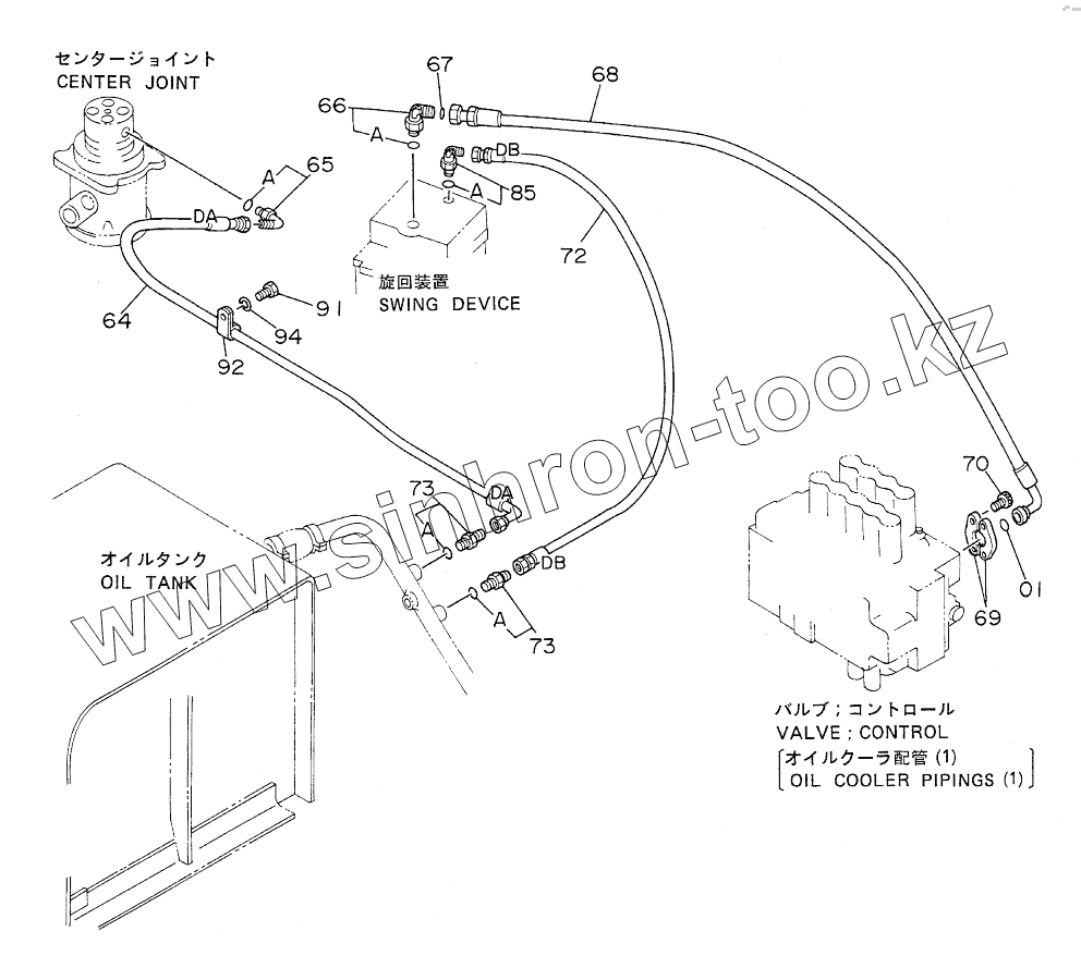 Каталог запасных частей к технике: Hitachi EX-220. OIL COOLER PIPINGS (3)