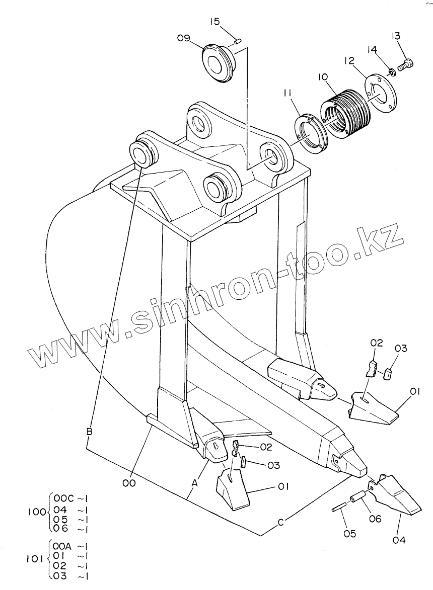 Каталог запасных частей к технике: Hitachi EX-220. RIPPER BUCKET 0.7