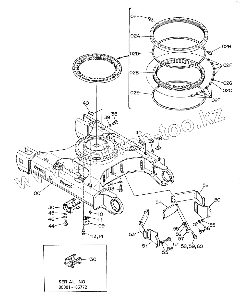 Каталог запасных частей к технике: Hitachi EX-220. TRACK FRAME (LC TRACK)