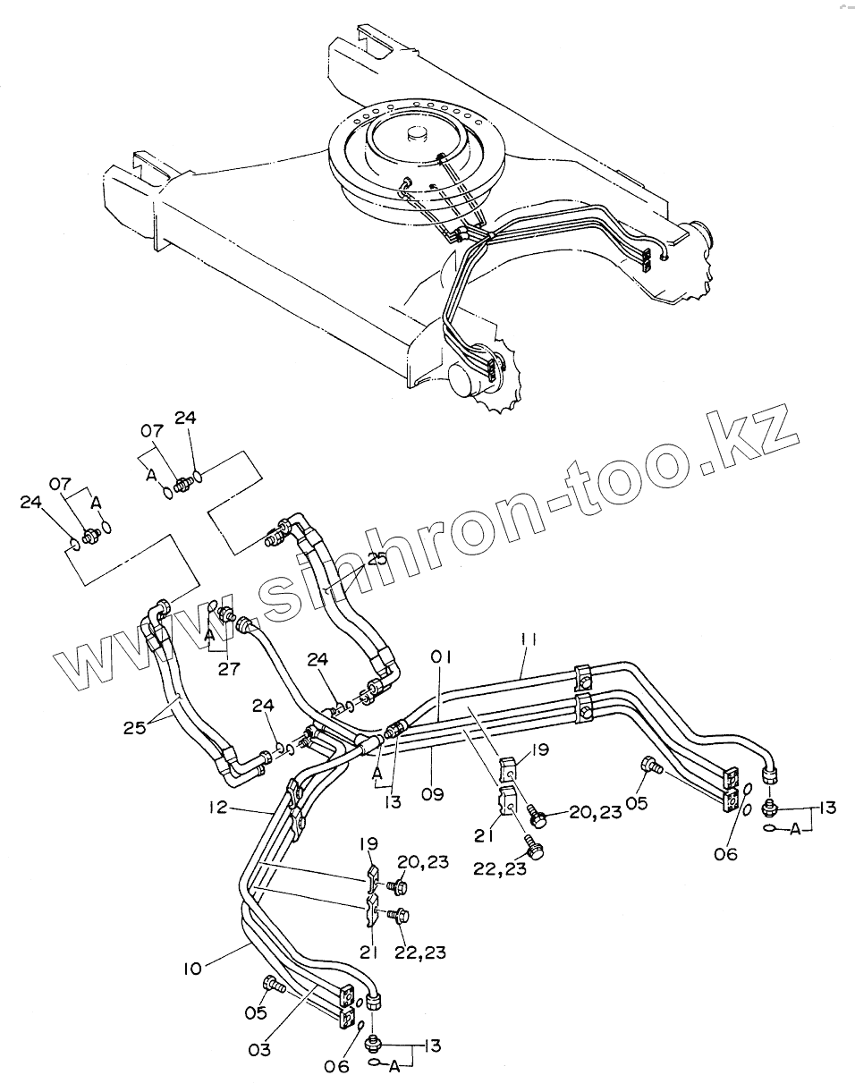 Каталог запасных частей к технике: Hitachi EX-220. TRAVEL PIPINGS (LC TRACK)