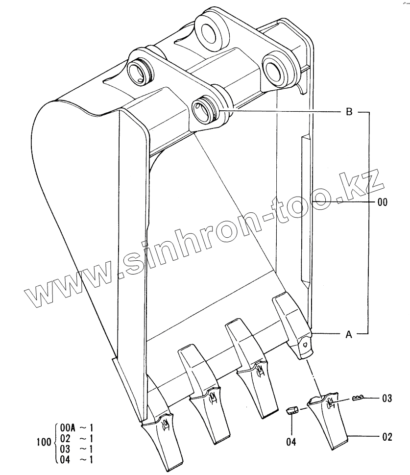 Каталог запасных частей к технике: Hitachi EX-220-2. BUCKET 0.3