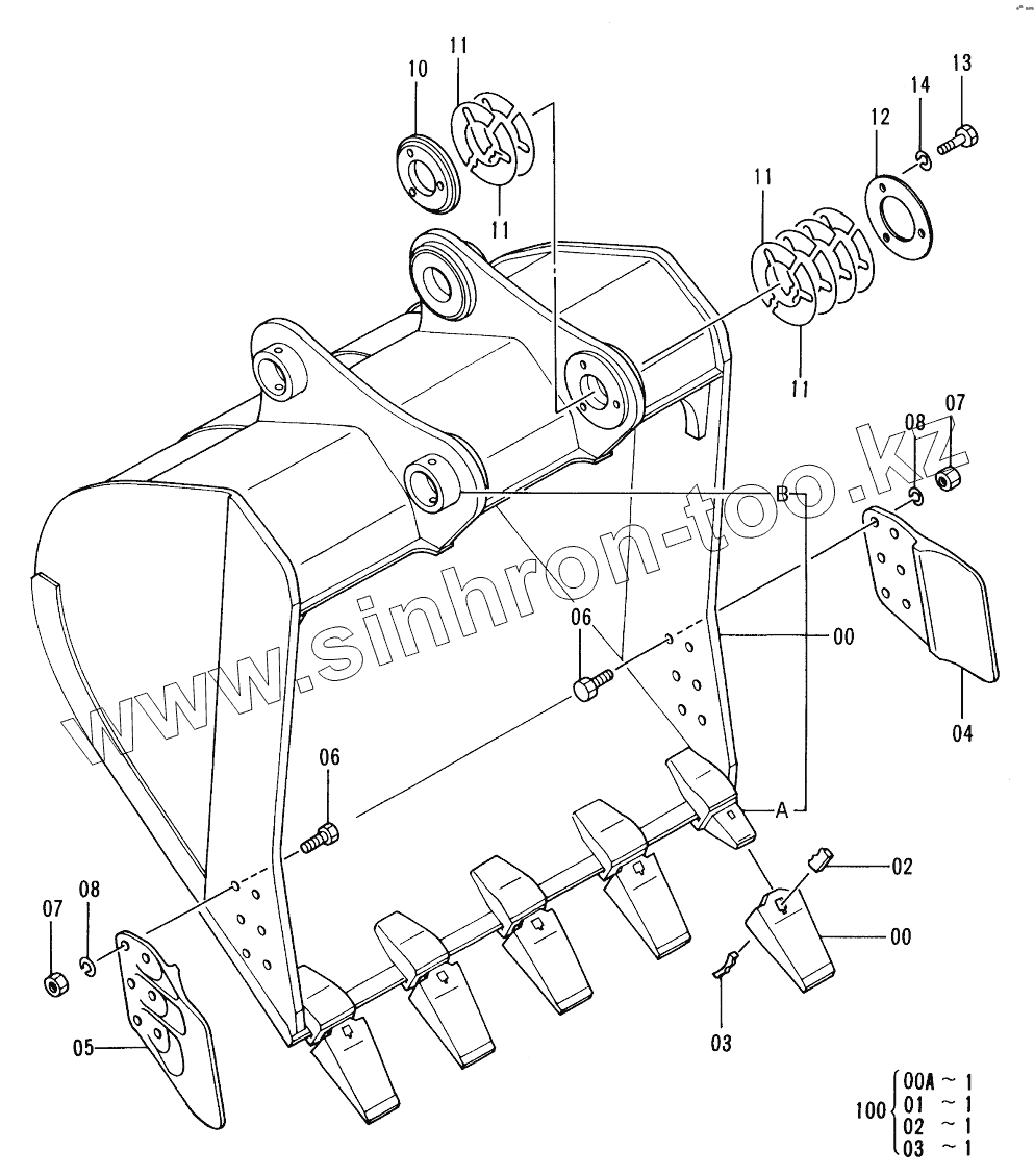 Каталог запасных частей к технике: Hitachi EX-220-2. BUCKET 1.1