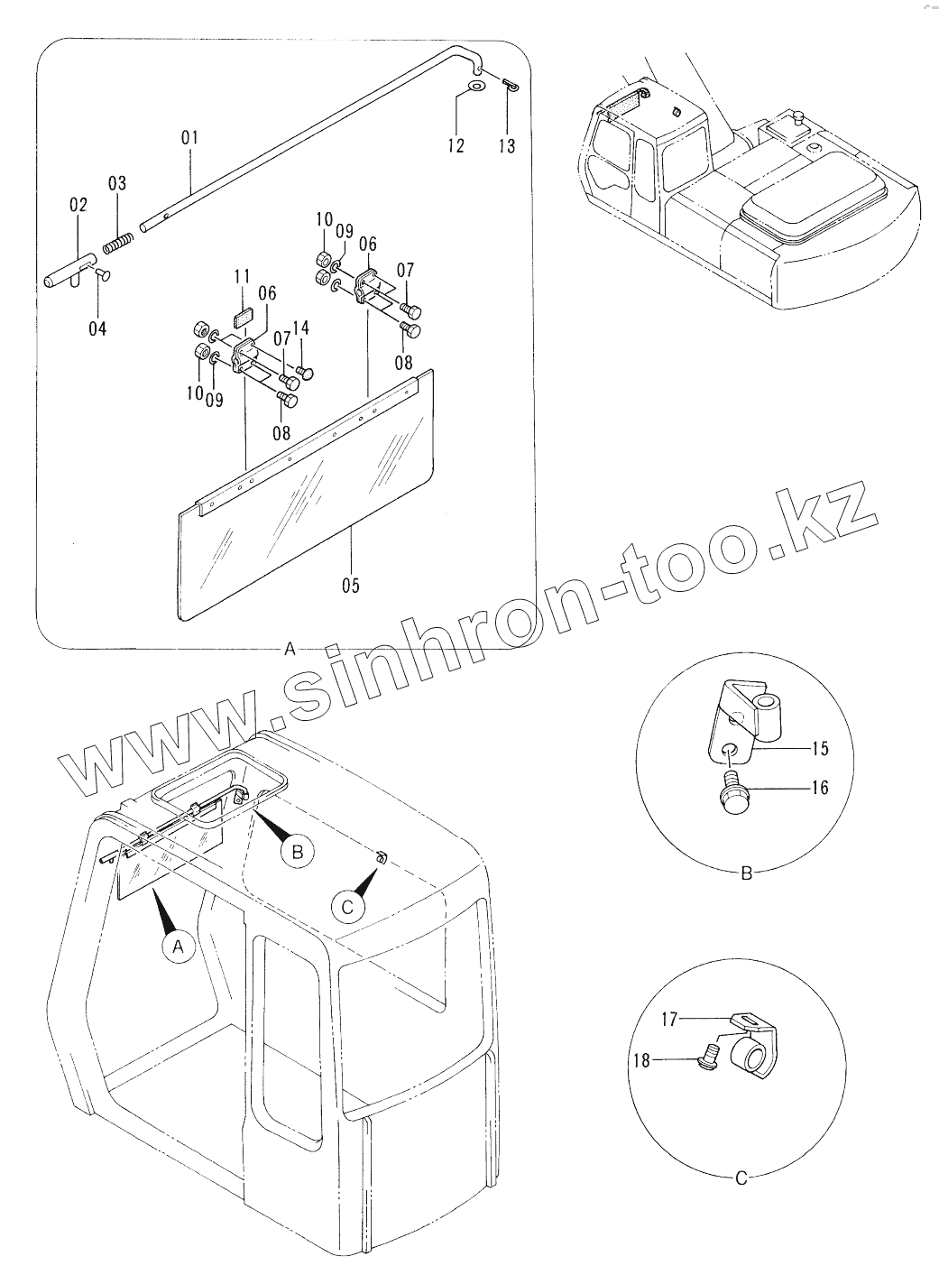 Каталог запасных частей к технике: Hitachi EX-220-2. CAB (7): SUNVISOR <N.EUROPE>